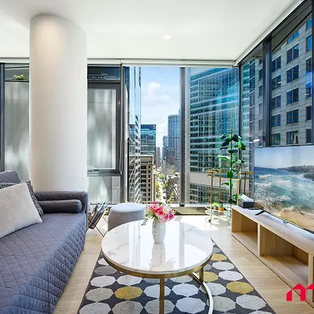 El Metawise Sydney Cbd Luxury City View 2Bed Apartment dispone de una cocina completa y una zona de comedor y un comedor al aire libre. El apartamento está situado a unos minutos a pie del tren urbano QVB. En la propiedad encontrarás piscina en un patio.